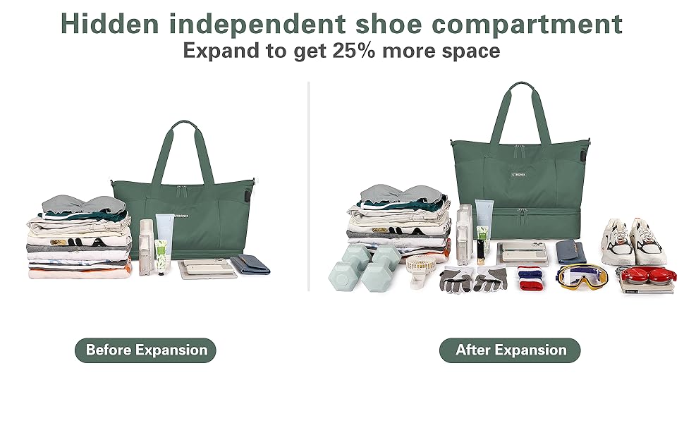 - 💙【Expandable Shoe Compartment】: The expandable bottom compartment for your shoes and clothes could help increase the capacity of the bag from 31L to 42L. The weekender bag also comes with 2 extra free shoe bags which help you to pack the shoes or dirty clothes. Therefore, you could choose the size of the bag as you wish on different occasions.