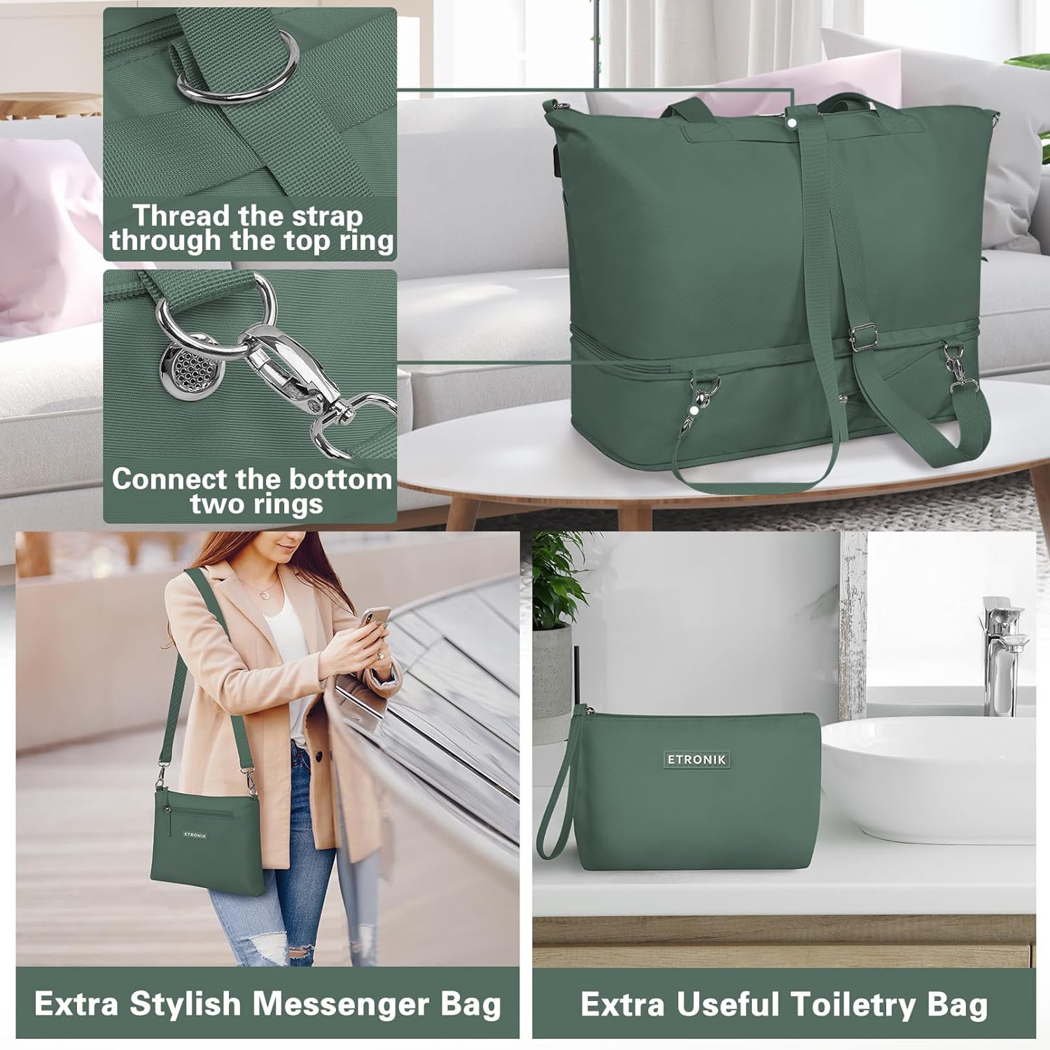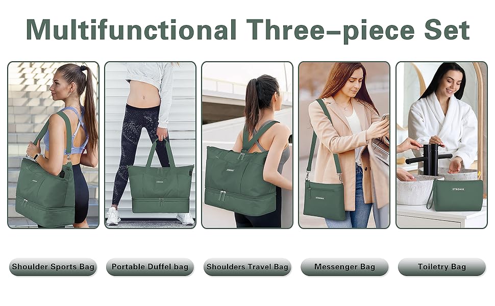 - 💙【Upgrated Travel Duffel Bag Set】: Come with a crossbody bag and a toiletry bag. 2 adjustable & detachable straps( wide for the weekender bag and thin for the crossbody bag). You could also use the wide strap to turn the bag into a shoulder bag. We believe it’ll help you better sort out your belongings for the upcoming trip.