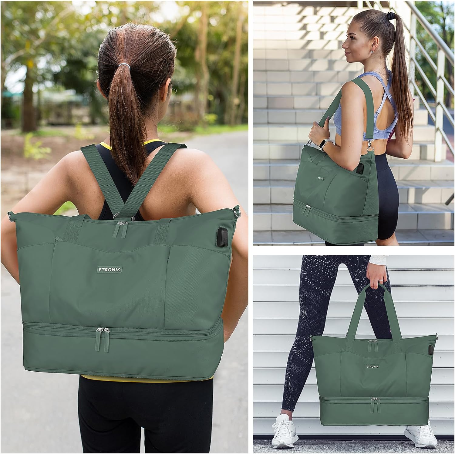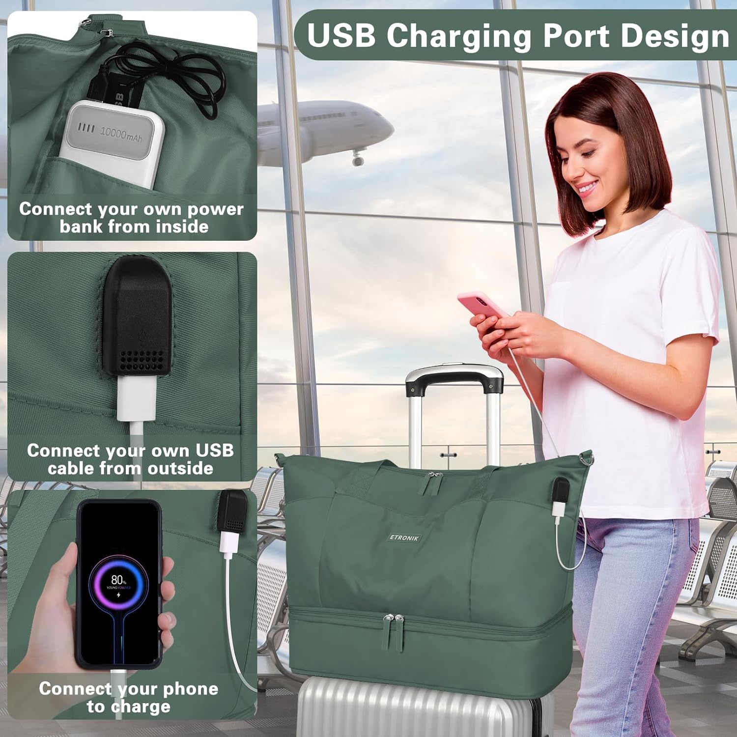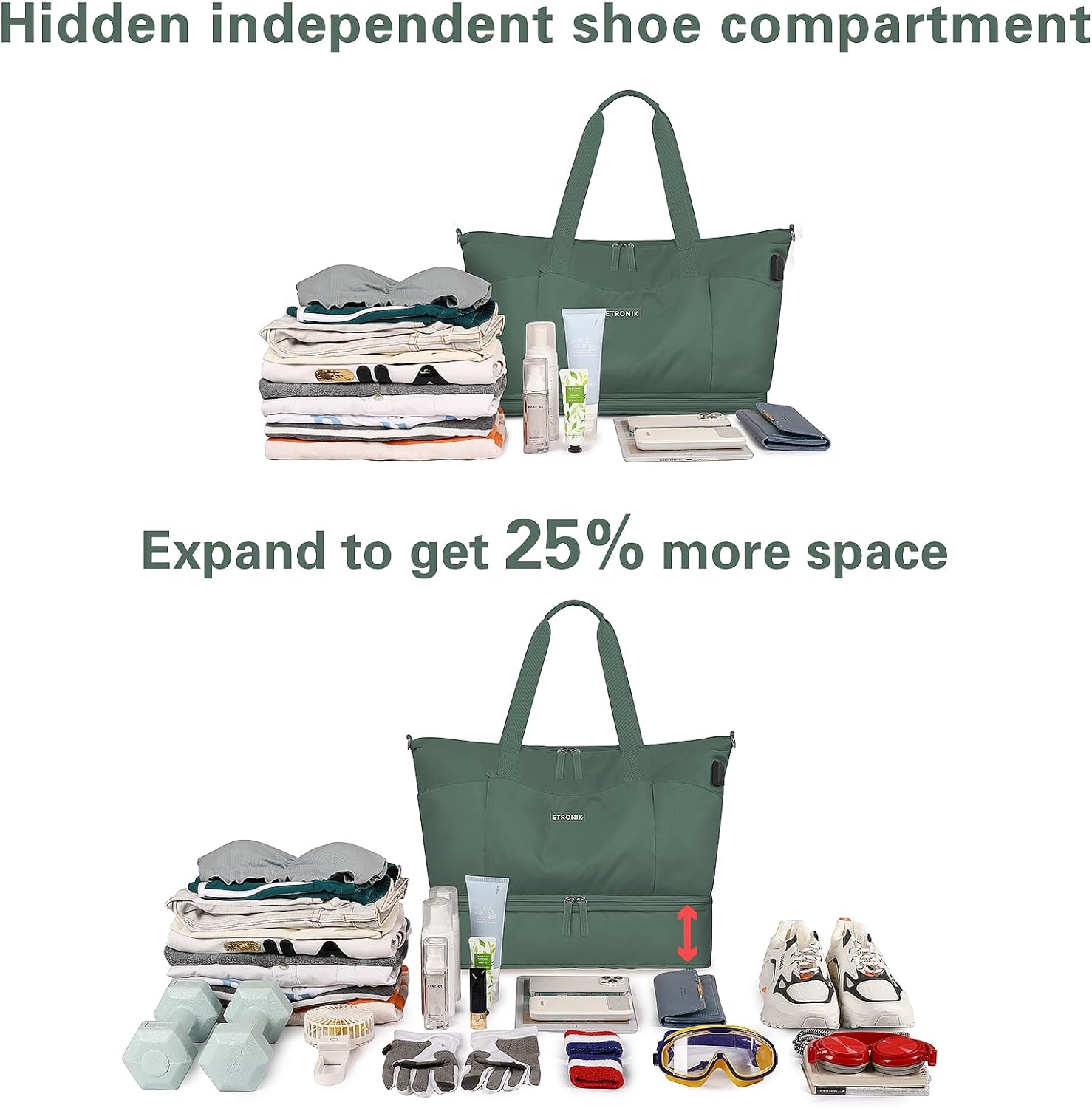 Expandable Weekender Bag for Women, Travel Duffel Bag with USB Charging Port, Gym Bag with Shoe Compartment and Wet Pocket