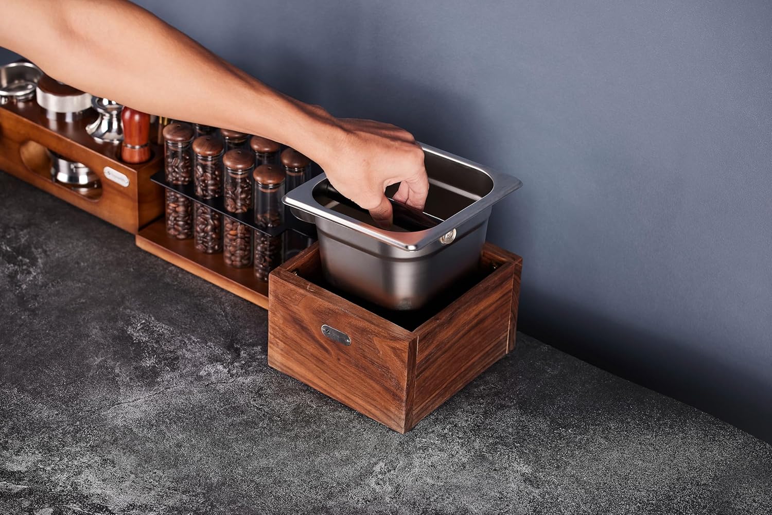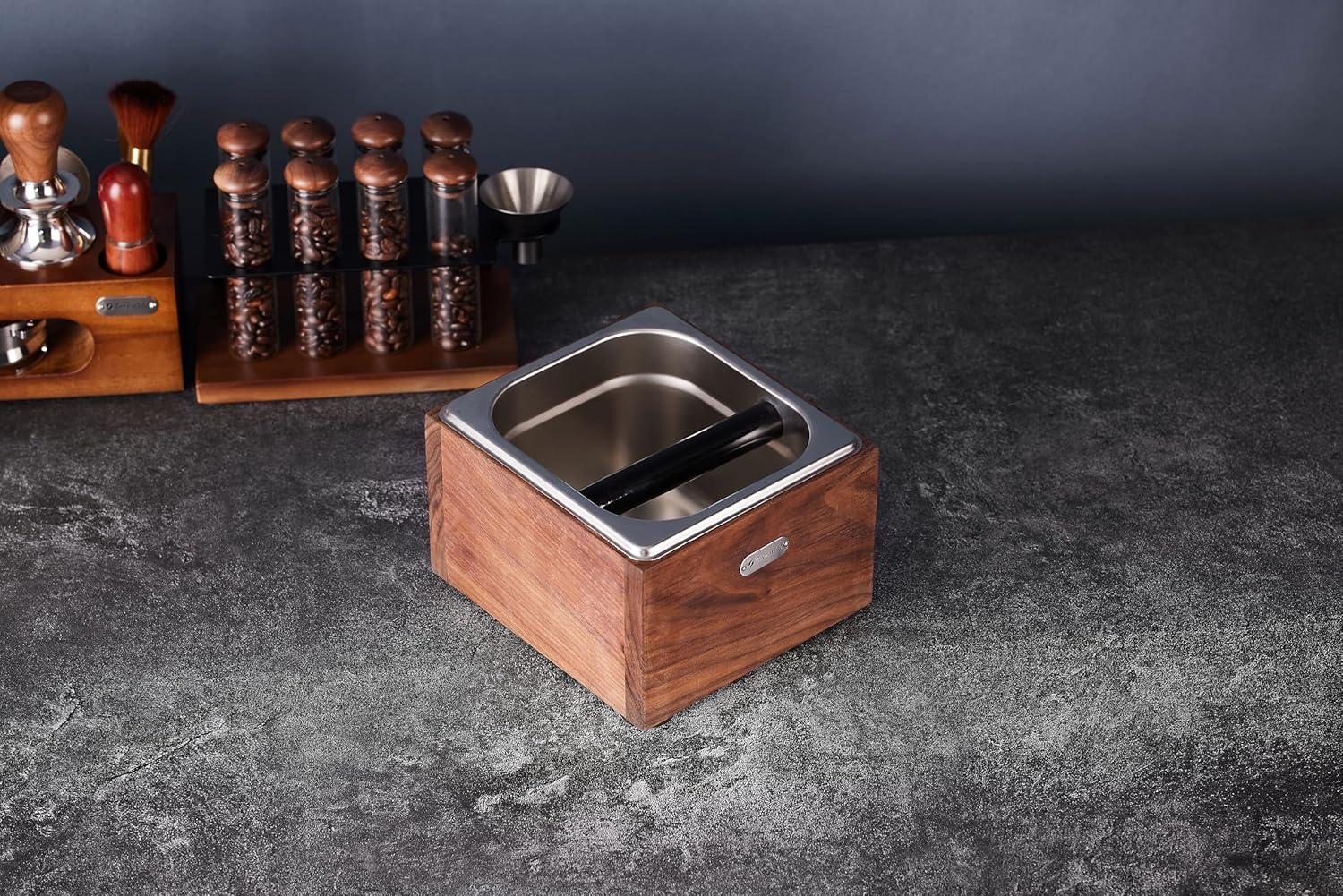 Premium Build Quality: Made from durable walnut wood, this knock box brings an elegant touch to your coffee station while ensuring durability.